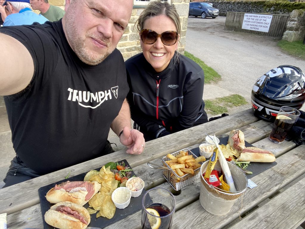 Clobber on and a short ride out to The Crown, Hutton-Le-Hole. Suns out so sat on a bench watching the world go by.
